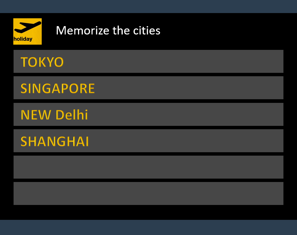 - Recall as many of the original cities as possible.